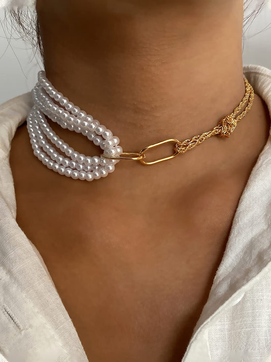 Necklace for Women and Girls Pearl Necklace for Women | Gold Plated Multilayered Choker Set of 2Pcs Necklace for Girls | Birthday Gift for girls and women Anniversary Gift for Wife