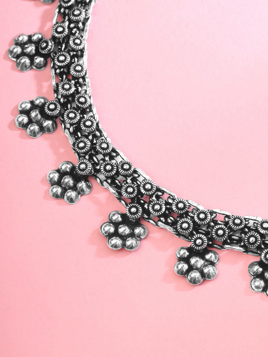 Jewellery Set for Women and Girls Traditional Silver Oxidised Jewellery Set Silver Choker Set | Floral Crafted Choker Necklace Set for Women | Birthday Gift For Girls and Women Anniversary Gift for Wife