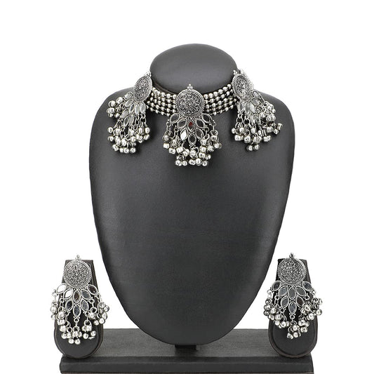 Jewellery Set for Women and Girls Traditional Silver Oxidised Jewellery Set Silver Choker Set | Ghungroo Choker Necklace Set for Women | Birthday Gift For Girls and Women Anniversary Gift for Wife