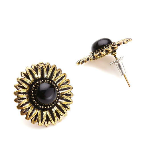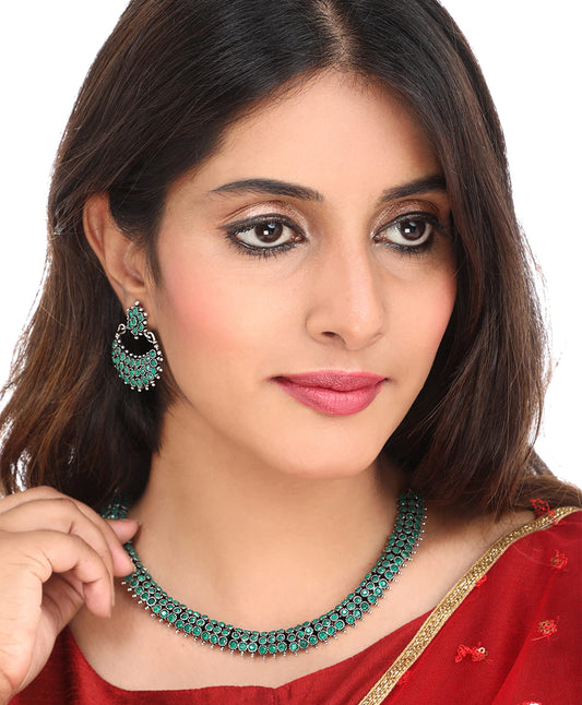 Ethnic German Silver Oxidised Black studded stones Choker Necklace Set Traditional Jewellery Set for Women and Girls, Medium (YCTJNS-56OXDRCK-BK)