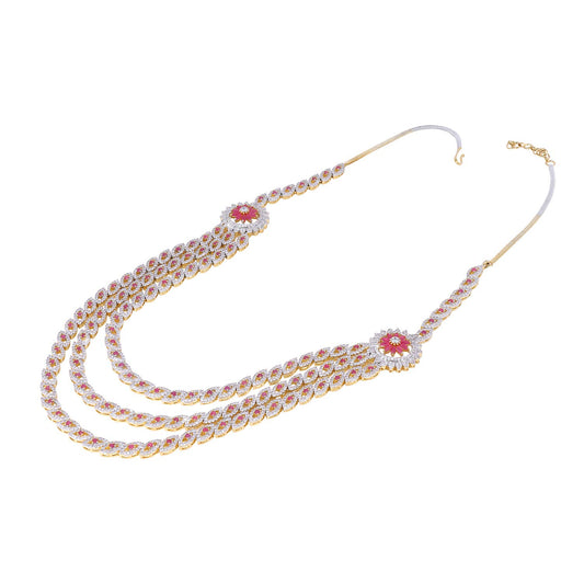 Luxurious Looks AD/American Diamond Studded 18K Gold Plated Rani Haar MultiLayer Necklace Set Jewellery Set for Women & Girls