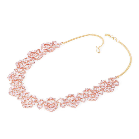 Luxurious Looks AD/American Diamond Studded Rose Gold Plated Designer Necklace Set Jewellery Set for Women & Girls