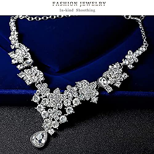 Crystal Jewellery Set for Women Floral Design A5 Grade Zircon Crystal Silver Choker Necklace Set for Women and Girls.
