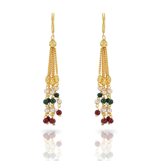 Ganthan Multicolour Pearl Gold Plated Traditional Necklace Set with Earrings Jewellery Set for Women and Girls