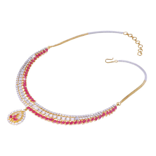 Classic Pink AD/American Diamond Studded 18K Gold Plated Designer Choker Necklace Set with Earrings for Women & Girls, Medium (Model: YCADNS-10LEFCRY-PK-ALT)