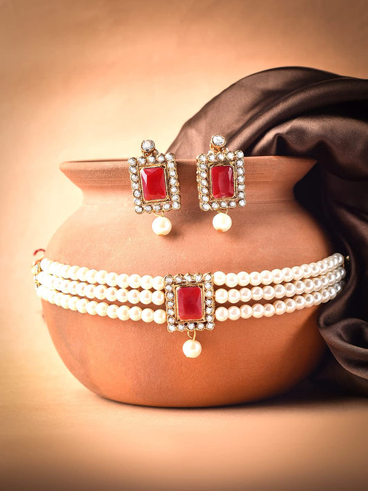 Jewellery Set for Women and Girls Traditional White Pearl Necklace Set for Women | Gold Plated Choker Necklace Set | Choker Pearl Set | Birthday Gift for girls and women Anniversary Gift for Wife