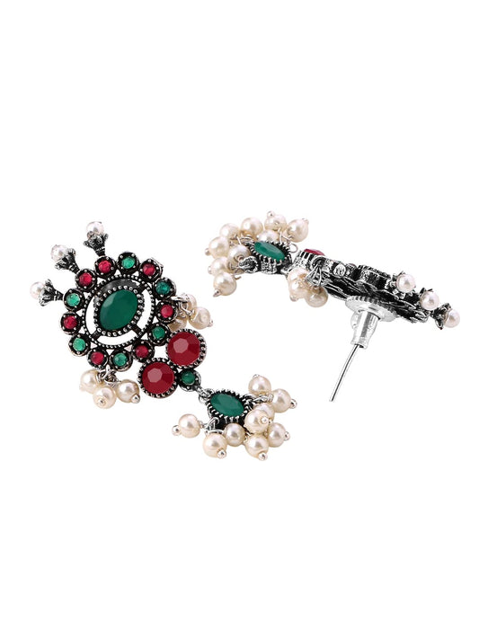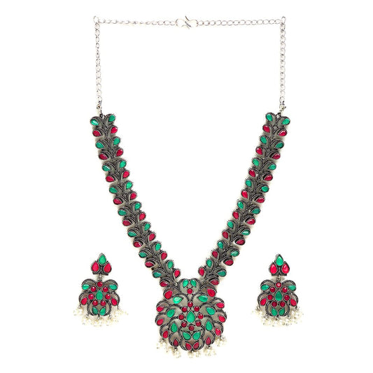 Oxidised Jewellery Set for Women Silver Oxidised Jewellery Set Multicolor Stone Studded Necklace Set for Women and Girls