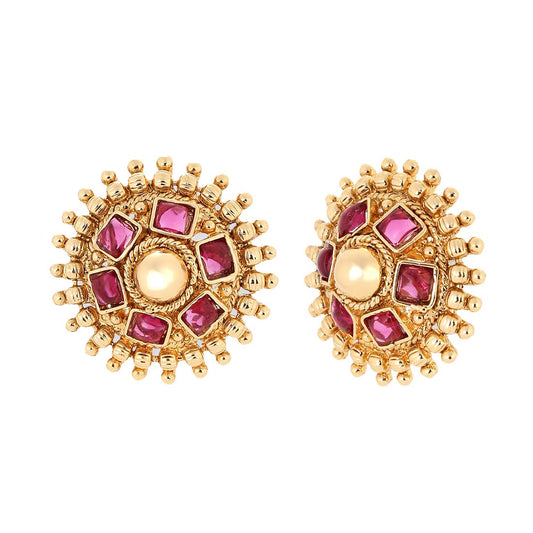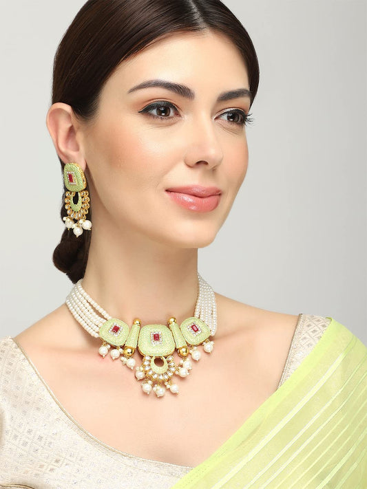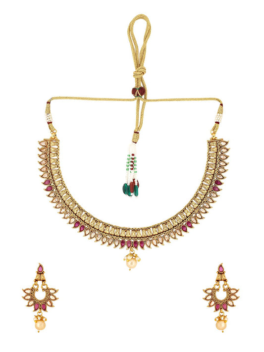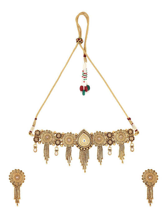 Ethnic Handcrafted Classic Jewellery Set Studded Stoned Gold Plated Traditional Choker Necklace Set for Women & Girls