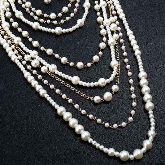 Latest Fashion White Pearl Royal Style Multilayer Necklace Set with Earrings and Bracelet for Women & Girls