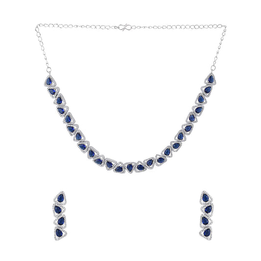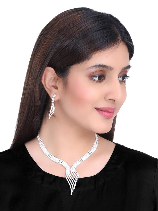 Crystal Jewellery Set for Women Silver-Plated White Crystal Studded Choker Necklace Set for Women and Girls