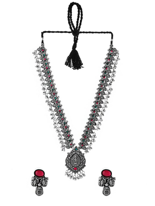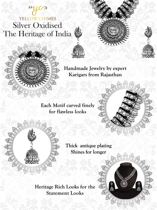 Jewellery Set for Women and Girls Traditional Silver Oxidised Jewellery Set Silver Necklace Set for Women | Oxidized Long Necklace Set | Birthday Gift For Girls and Women Anniversary Gift for Wife