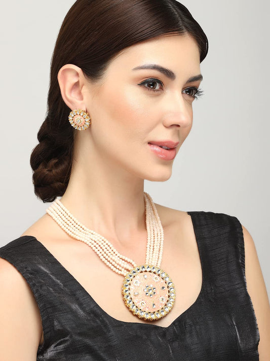 Kundan Jewellery Set for Women Traditional Peach Beads Meenakari Worked Gold Plated Long Necklace Set for Women and Girls.