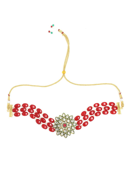 Kundan Jewellery Set for Women Traditional Red Beads Necklace Set Gold Toned Choker Necklace Set for Women and Girls.