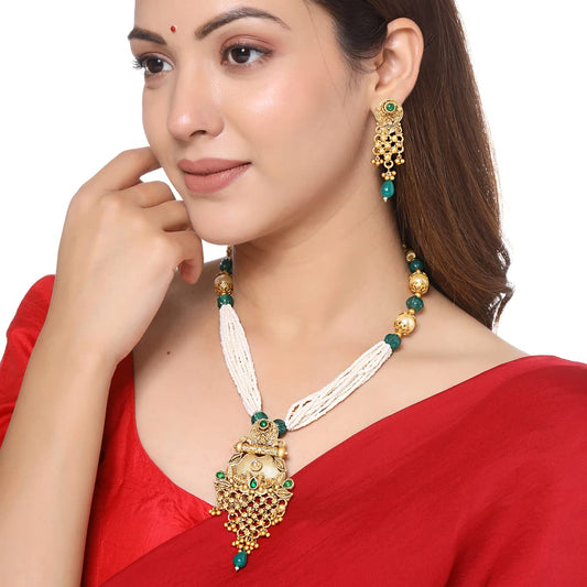 Necklace Set For Women Multilayer Dark Green Stone Pearl Beaded Necklace With Earring For Women and Girls