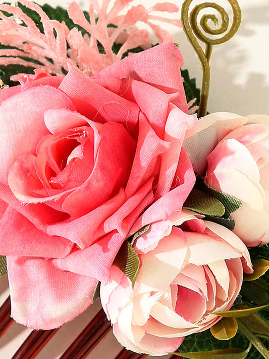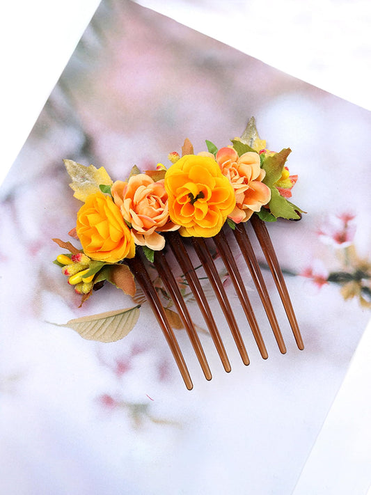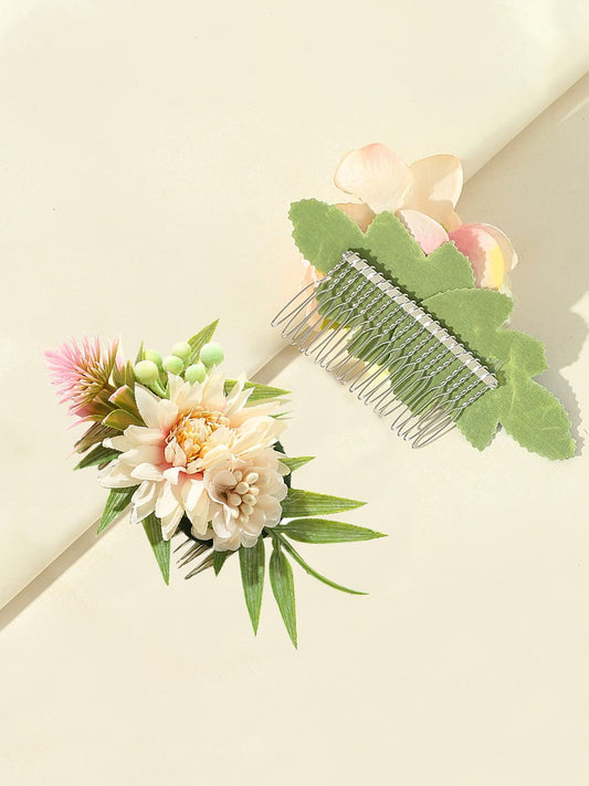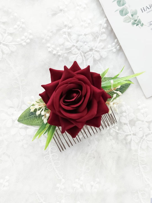 Comb Pin for Women Hair Accessories for Women Floral Leafy Hair Pins for Women Artificial Floral Hair Pin Bridal Hair Accessories for Wedding Side Pin / Hair Clip / Juda Pin Accessories for Women