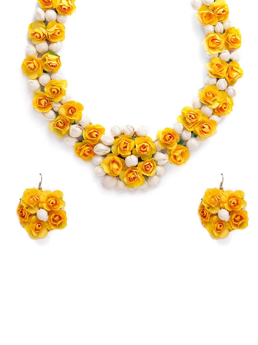 Yellow Flower Jewellery Set for Haldi Baby Shower Mehandi Godbharai Bahubali Paper Aritificial Jewelley Set for Women and Girls