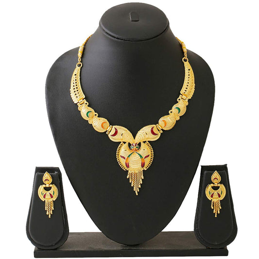 Ethnic One Gram Gold Designer Antique Golden Traditional Choker Necklace with Earrings Jewellery Set for Women & Girls