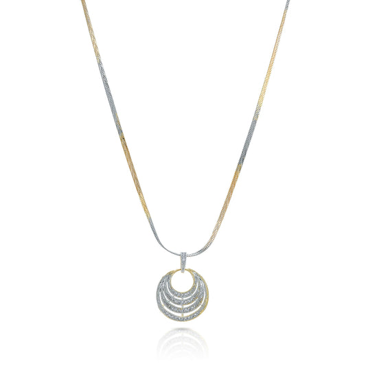 Sparkling AD/American Diamond Latest Fashion Big Circle Shaped Dual Tone Jewellery Pendant Set with Earrings For Women & Girls