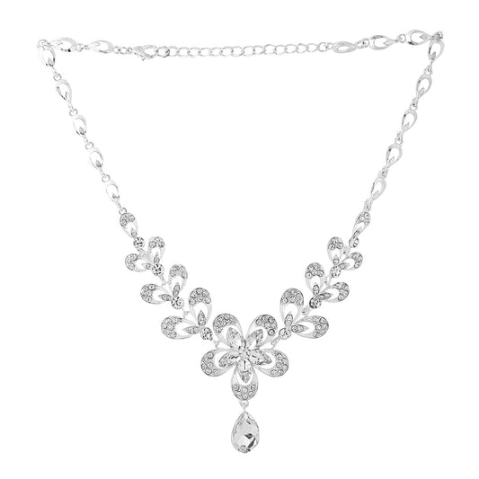 Jewellery Set For Women Silver Toned Floral Designed Crystal Necklace Set For Women and Girls