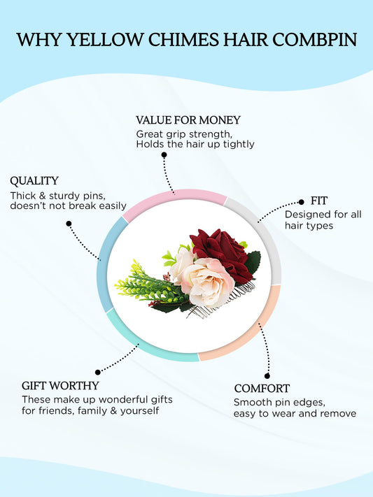 Comb Pin for Women Hair Accessories for Women Floral Hair Pins for Women Artificial Floral Hair Pin Bridal Hair Accessories for Wedding Side Pin/Hair Clip/Juda Pin Accessories for Women