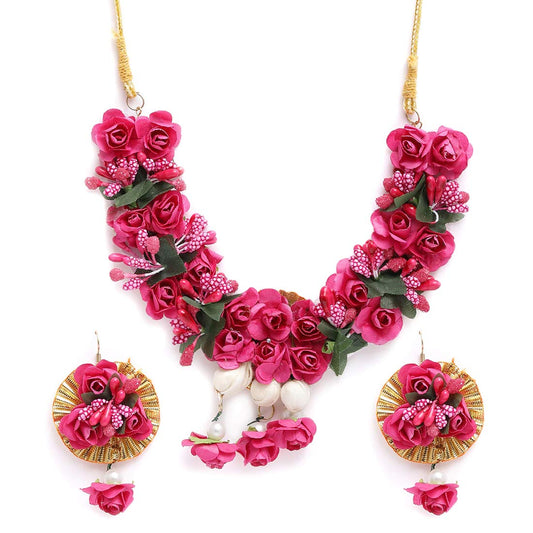 Dark Pink Flower Jewellery Set for Haldi Baby Shower Mehandi Godbharai Bahubali Paper Aritificial Jewelley Set for Women and Girls