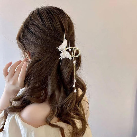 Butterfly Hair Clips: Elegant Gold Claw Clips with Tassels | Single Pack | For All Hair Types