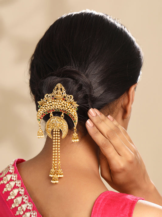 Juda Pin (Pack of 1): Bridal Gold Plated Hair Accessory with Lakshmi Design | 15cm x 7cm | Gold