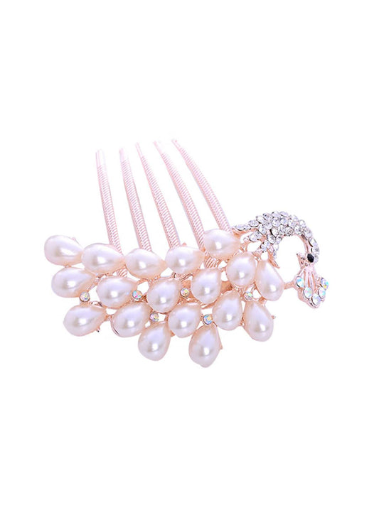 Comb Pin for Women Hair Accessories for Women Comb Clips for Hair for Women Rosegold Crystal Hair Pin Peacock Shaped Bridal Hair Accessories for Wedding Side Pin / Comb Pin / Juda Pin Accessories for Women