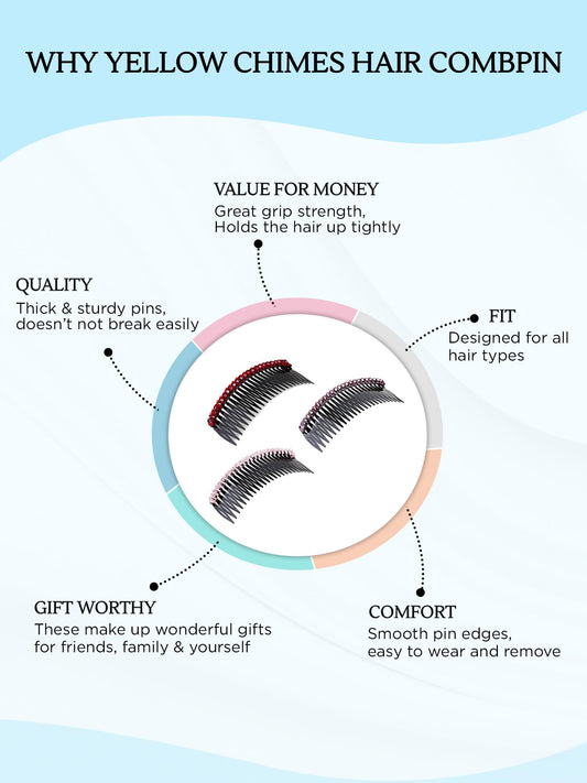 Comb Pin for Women Hair Accessories for Women Western Comb Clips for Hair for Women Set of 3 Pcs Juda Pin Hair Pins for Women Side Pin/Comb Pin/Juda pin Accessories for Women