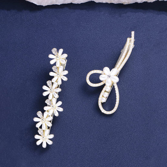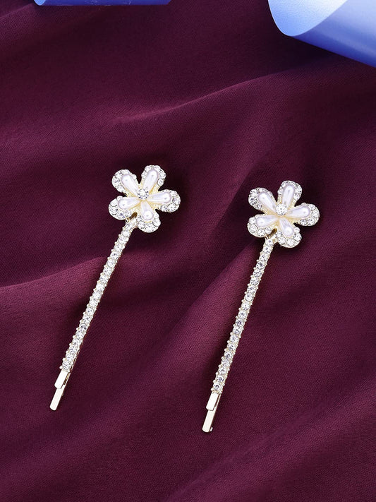 Yellow Chimes Hair Clips for Women 2 Pcs Hairclips for Girls Elegant Mini Pearl Allegator Clip Floral Hair Clips Hair Accessories for Women and Girls.