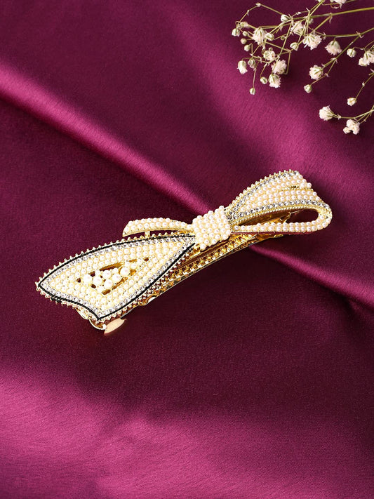 Hair Clips for Women Girls Barrette Hair Clips for Women Hair Accessories for Women Bow Clips for Women White Pearl French Barrette Hair Clips for Women and Girls Gift For Women & Girls