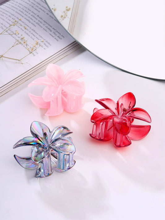 Combo: Set of 3 Floral Claw Clips for Women - Non-Slip, Durable | Multicolor | Korean Style
