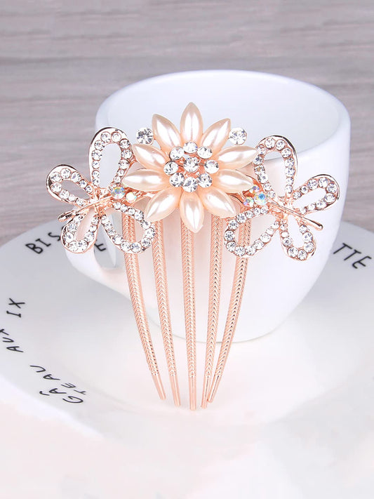 Comb Pin for Women Hair Accessories for Women Floral Comb Clips for Hair for Women Rosegold Crystal Hair Pin Bridal Hair Accessories for Wedding Side Pin / Comb Pin / Juda Pin Accessories for Women