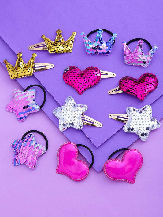 Melbees by Combo of Sequins Studded 6 PCS Ponytail Holders Rubber Bands and 3 Pairs Hair Clips Hair Accessories for Kids Girls (Pack of 12), Multi-Color, Medium