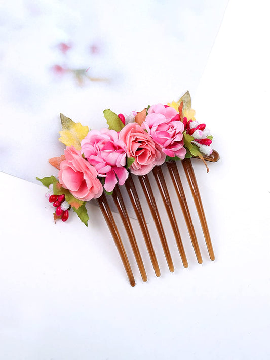 Comb Pin for Women Hair Accessories for Women Floral Hair Pins for Women Artificial Floral Hair Pin Bridal Hair Accessories for Wedding Side Pin/Hair Clip/Juda Pin Accessories for Women