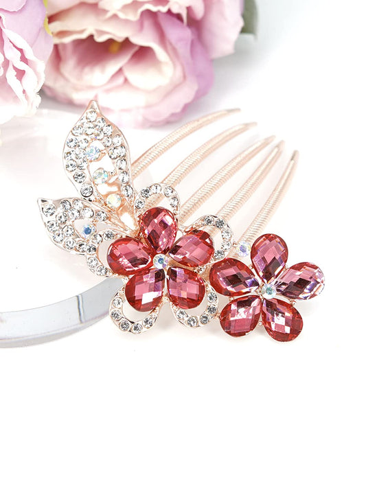 Comb Pin for Women Hair Accessories for Women Floral Comb Clips for Hair for Women Rosegold Crystal Hair Pin Bridal Hair Accessories for Wedding Side Pin / Comb Pin / Juda Pin Accessories for Women