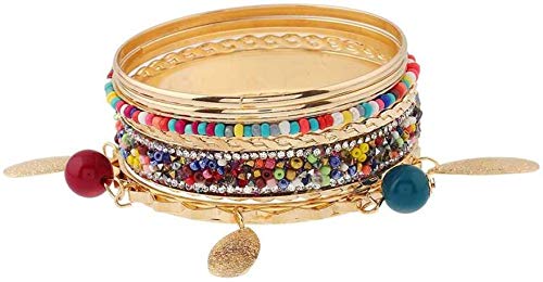 Classic Design 7 Pcs Colorfull Beads Studded Pearl's Ethnic Style Gold Plated Boho Bangles Set for Women and Girl's