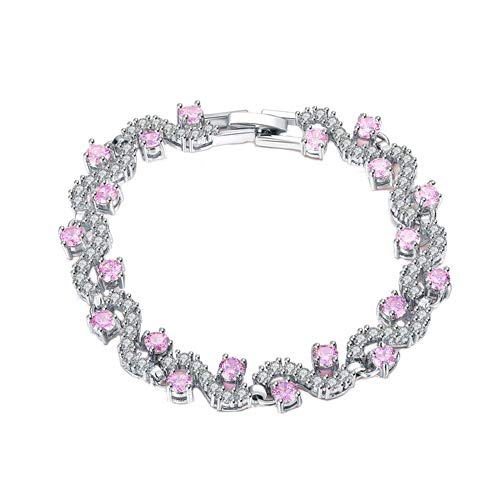 Rich Royal Pink Crystal CZ Designer Bracelet for Women by YELLOW CHIMES (Pink)