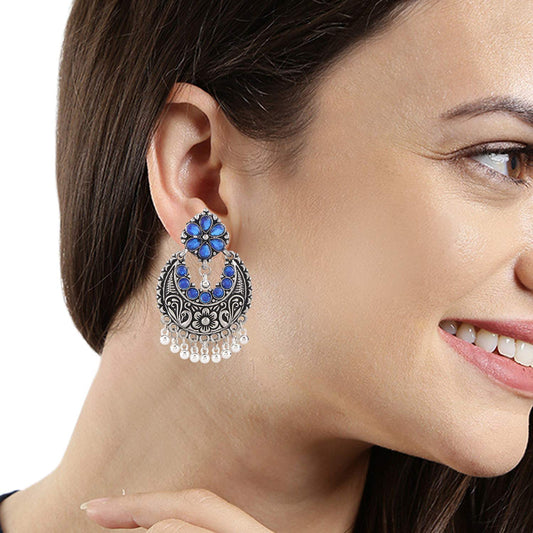 Oxidised Silver Traditional Chand Bali Earrings for Women and Girls