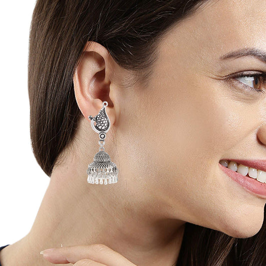 Peacock Fem Bell Ghungroo Silver Oxidized Jhumka Earrings for Women and Girls