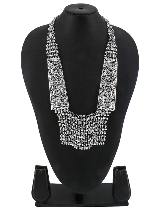 German Silver Oxidized Necklace Handmade Work Peacock Charm Studded Crystal Antique Necklace for Women and Girls (Silver Oxidized)