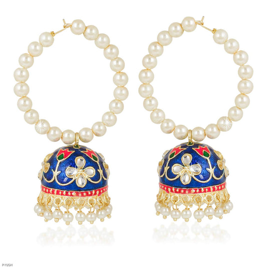 Blue Classic Designer Meenakari Kundan Pearl Copper Hoops Traditional Peacock Jhumka Earrings for Women and Girls