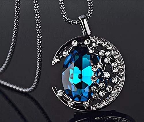 Latest Collection Crescent MoonLigth Half Moon Royal Blue Crystal Star Retro Long Chain Pendant Necklace for Women and Girls