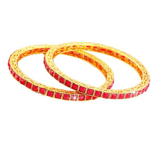 Exclusive Ruby Studded 2 PC Gold Plated Traditional Bangles Set for Women and Girls