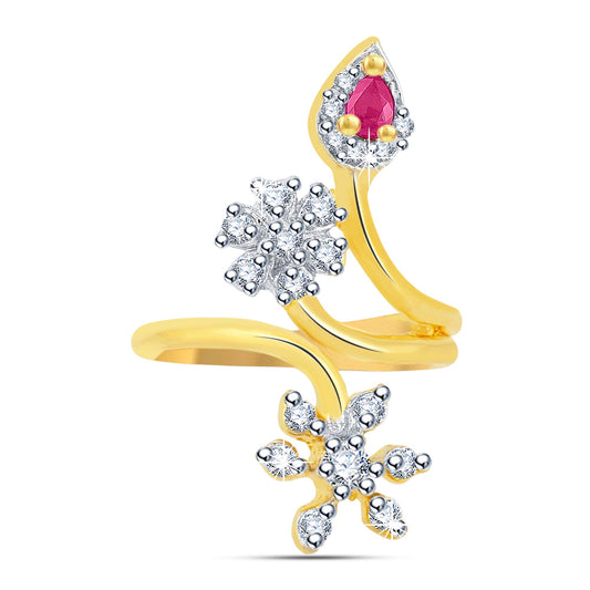 Premium A5 Grade American Diamond 18K Gold Plated Traditional Adjustable Ring for Women & Girls