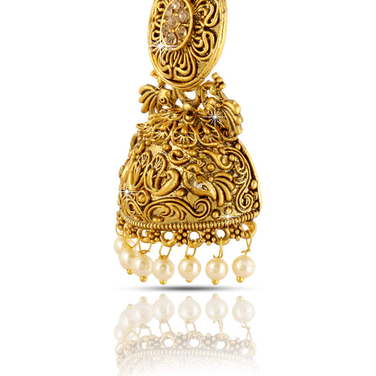 Traditional Jhumka/Jhumki Earrings Temple Jewellery Oxidized Matte Gold Plated Artistic Crafted Pecock Designer Pearl Party Wear Earrings for Womens & Girls