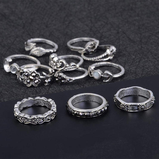 Combo of 11 Pcs/Set Boho Vintage Style Midi Finger Crystal Knuckle Rings Set for Women and Girls (Combo - 4)