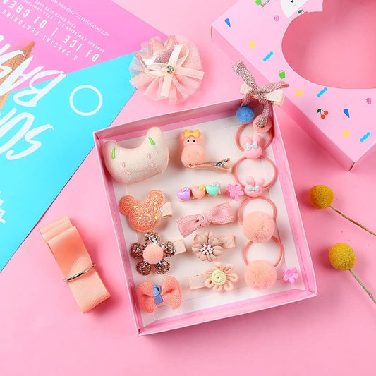 Melbees by Kids Hair Accessories for Girls Hair Accessories Combo Set Pestal Pink 18 Pcs Baby Girl's Hair Clips Set Cute Ponytail Holder Claw Clip Bow Clips For Girls Assortment Gift set for Kids Teens Toddlers