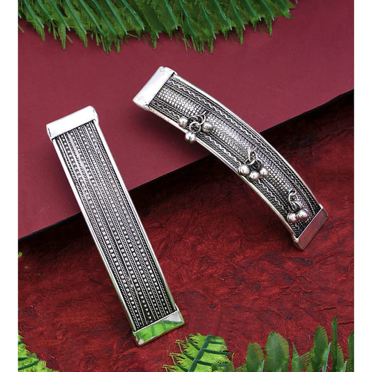 Yellow Chimes Hair Clips for Women Silver Oxidised Hairclips Combo of 2 PCs Traditional Gungroo Design Hair Clip for Women and Girls Hair Accessories.