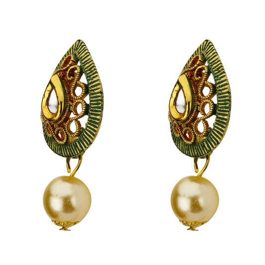 Traditional Pearl Kundan Gold Plated Necklace Woth Drop Earrings For Women